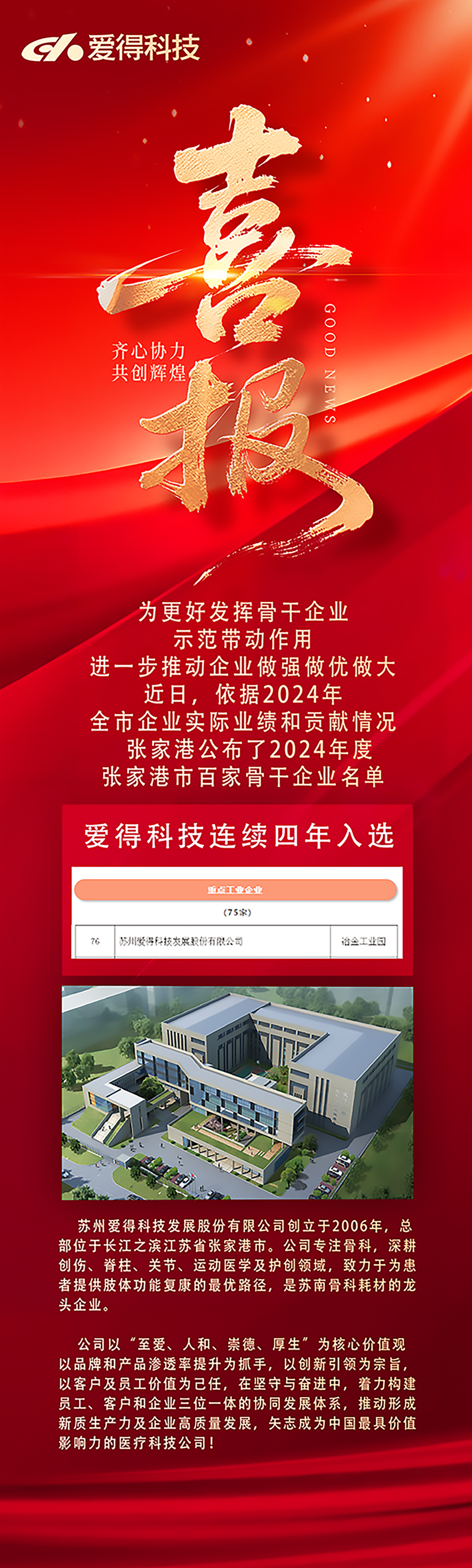 喜報丨愛得科技繼續入選張家港百強骨干企業名單!